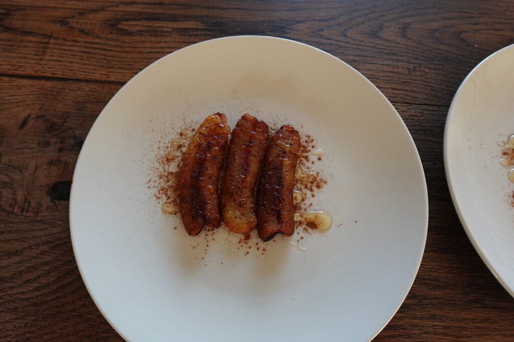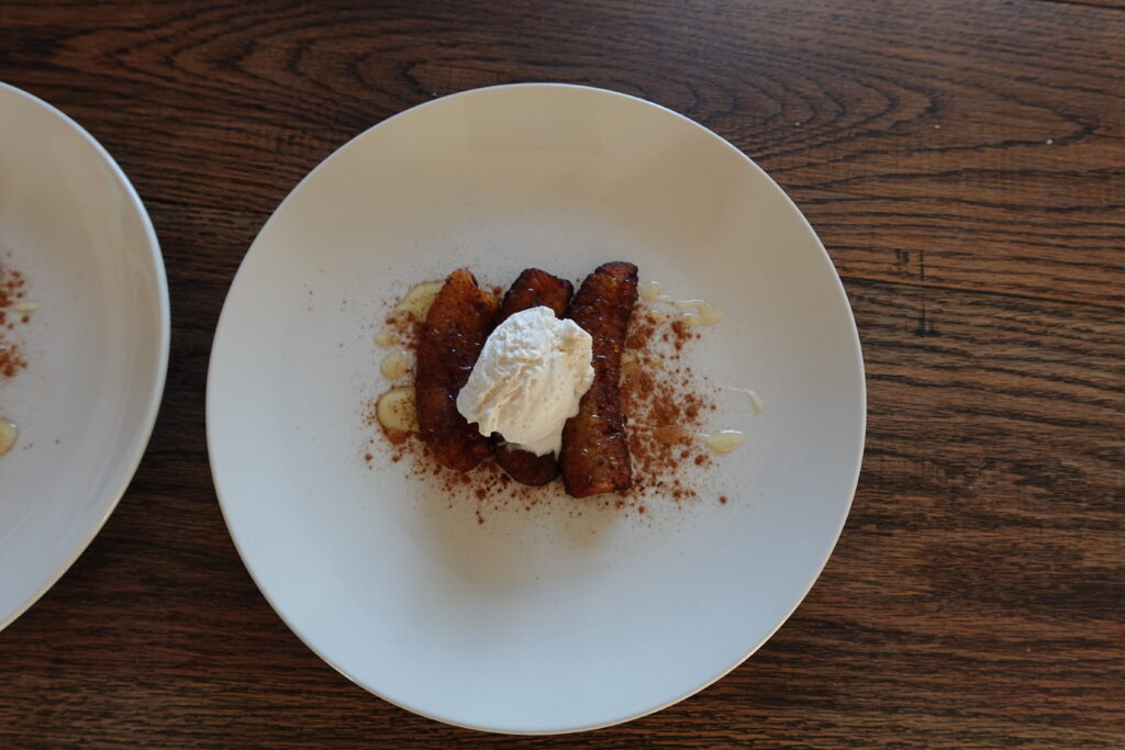 Ours is a simple recipe that requires only a few ingredients and a little technique. Though many people use a deep frier for cooking their bananas, ours are pan fried with coconut oil. The toppings are endless, but we favor cinnamon and a drizzle of fresh local honey. For a sweeter treat, add vanilla ice cream or top with some fresh cream (for which you can never go wrong).